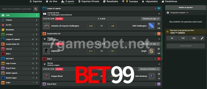 O bet99 oferece uma grande seleção de opções de apostas em e-sports com probabilidades competitivas